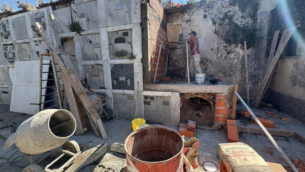 Entre las labores realizadas, se concretó la reconexión del servicio de agua en el sector de nichos sobre calle Sarmiento. Además, se llevaron adelante trabajos de refuerzo de losas, remoción de escombros y restos, con el objetivo de evitar que continúen deteriorándose las tumbas que comenzaron a derrumbarse en el año 2023.