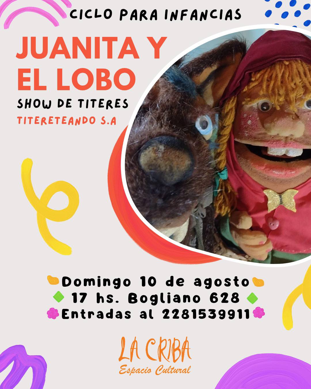 El domingo 10/8 a las 17 hs. se presentará un show de títeres de @titereando.sa , artistas de nuestra ciudad, en el marco del mes de las infancias.