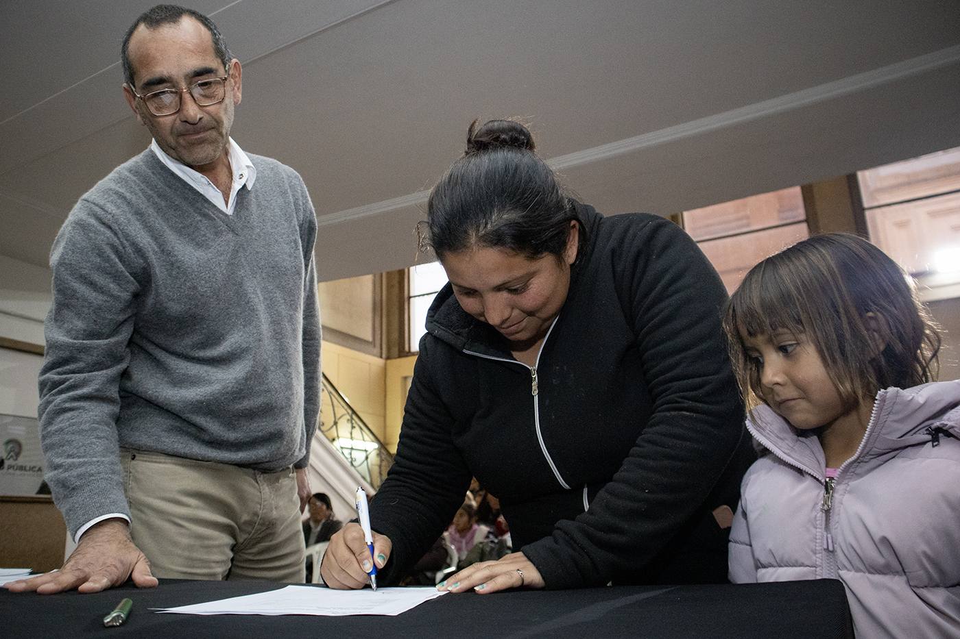 La tercera línea de acción que presentó tiene que ver con el acceso libre y equitativo a la tierra. Por ello, anunció que se encuentran disponibles 50 terrenos en los barrios de SOCOA y Bruno a los que podrán acceder familias, a partir de un sorteo público y transparente.