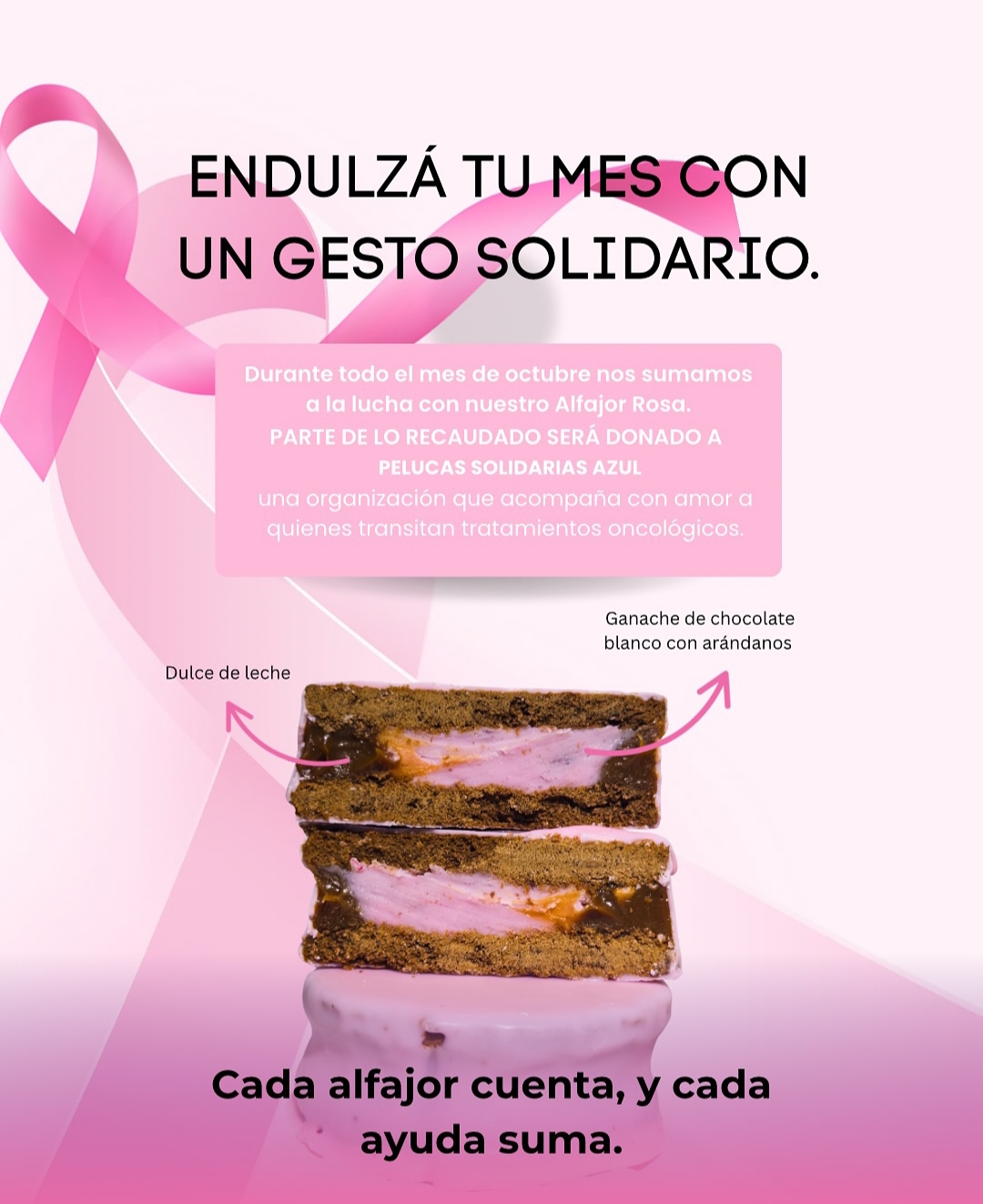MV: - Si, las chicas de Alta Pinta se conectaron, nos dijeron que a ellas les gustaría participar y entonces, por este mes, hacen una edición especial de Alfajores Rosas. Y un porcentaje de las ventas de esos alfajores, va destinado a Pelucas Solidarias.