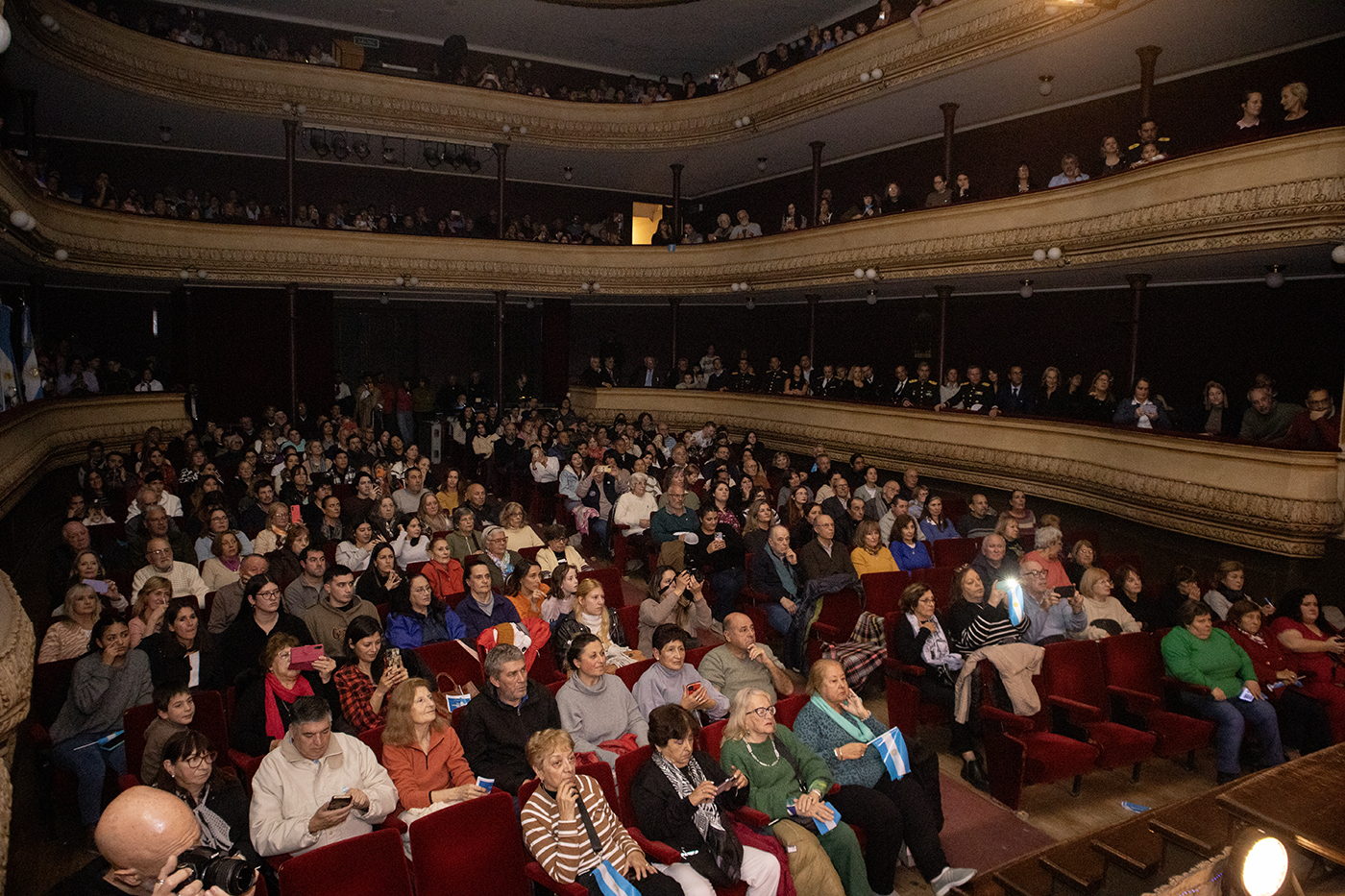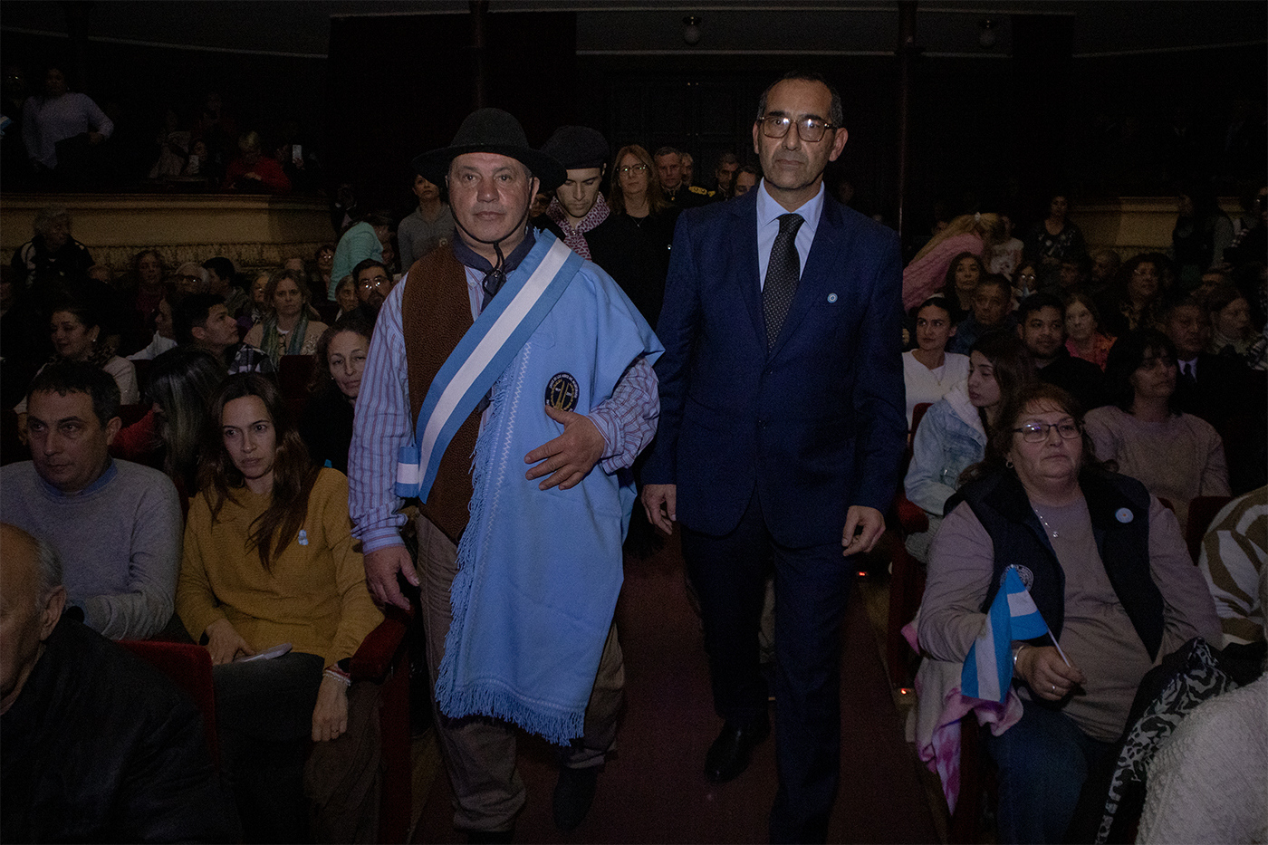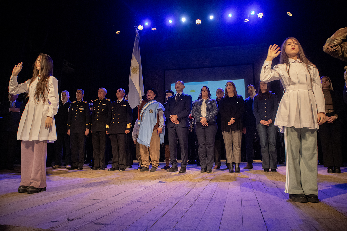 La actividad estuvo presidida por el intendente Nelson Sombra y se encontraban presentes la senadora provincial Lorena Mandagarán, la diputada bonaerense Laura Aloisi, la presidenta del Concejo Deliberante Pilar Álvarez, el presidente del Consejo Escolar Leandro Ferraro, funcionarios municipales, concejales, representantes y autoridades de entidades intermedias, vecinos y vecinas que colmaron el recinto. En tanto, daban marco abanderados y escoltas de escuelas, instituciones, agrupaciones tradicionalistas y fuerzas militares y de seguridad.