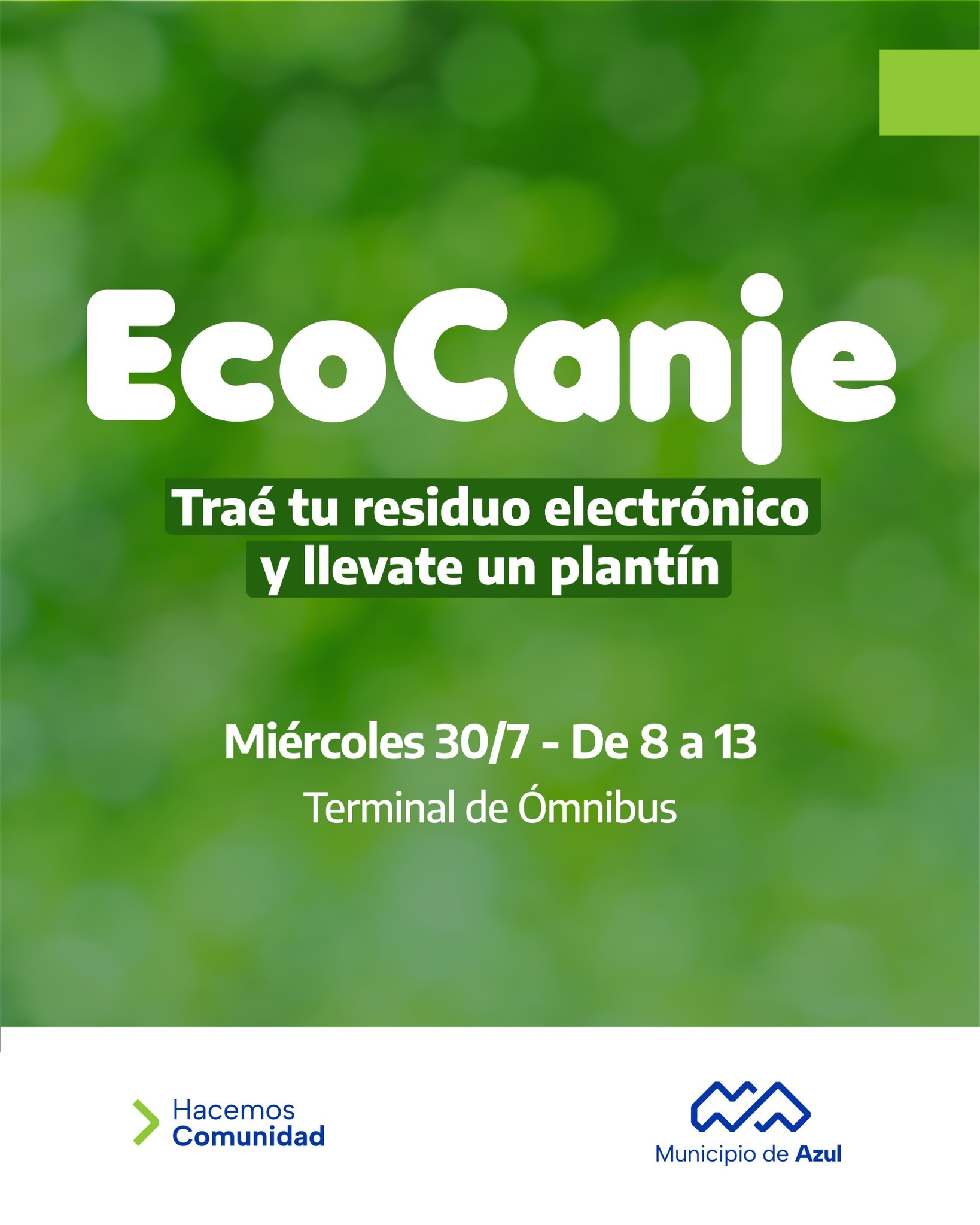 El Municipio de Azul informa que en el marco de la jornada de Recepción de Residuos de Aparatos Electrónicos y Eléctricos (RAEE) que se hará el miércoles 30, se suma la propuesta de EcoCanje.