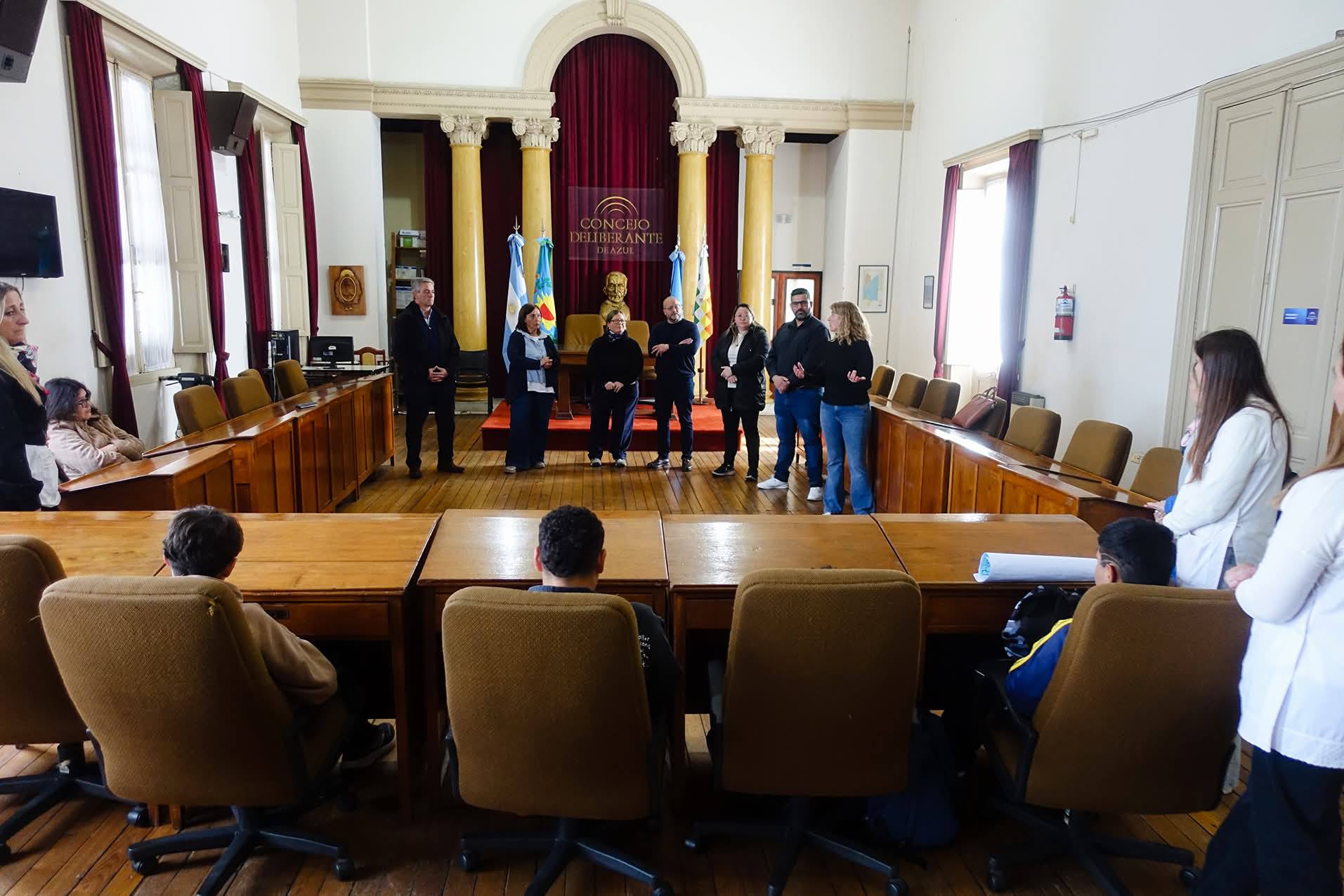 Los docentes y alumnos de la institución educativa fueron recibidos por el Secretario del Concejo Deliberante, Guillermo Ravizzoli y los Concejales Gisela Arbiza, Saúl Lucero, Gisella Hiriart y María Inés Laurini.