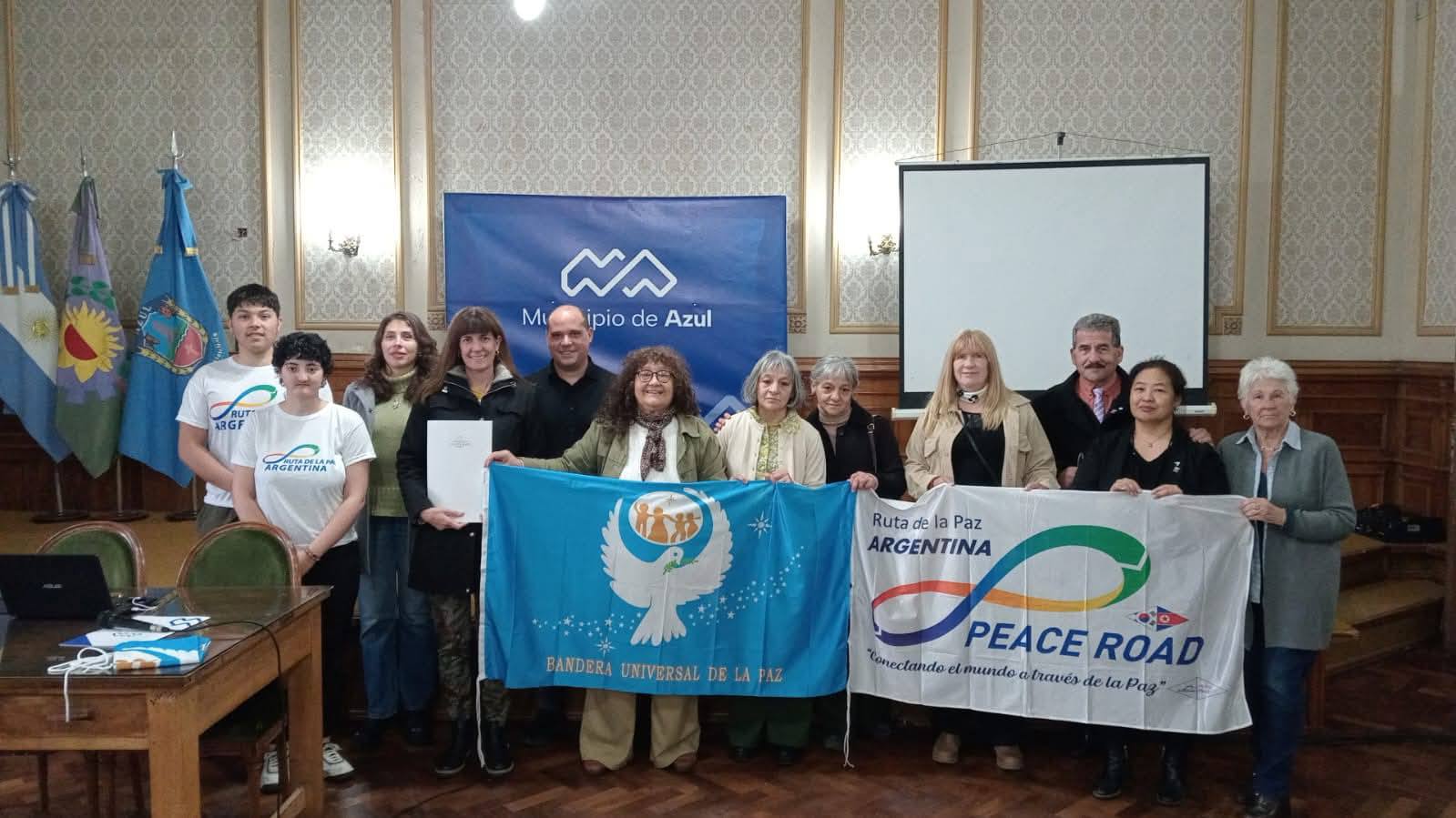 En la oportunidad, se hizo entrega de la Resolución N° 5.139, aprobada por unanimidad del Concejo Deliberante, que declara de Interés Cultural y Comunitario el “Encuentro por la Paz” que se realizó los días 19, 20 y 21 de septiembre en Azul, reconocida como “Ciudad Mensajera de Paz” por el movimiento “Pacis Nuntii” y la Federación para la Paz Universal, en el marco de la campaña mundial “Ruta de la Paz 2025”.