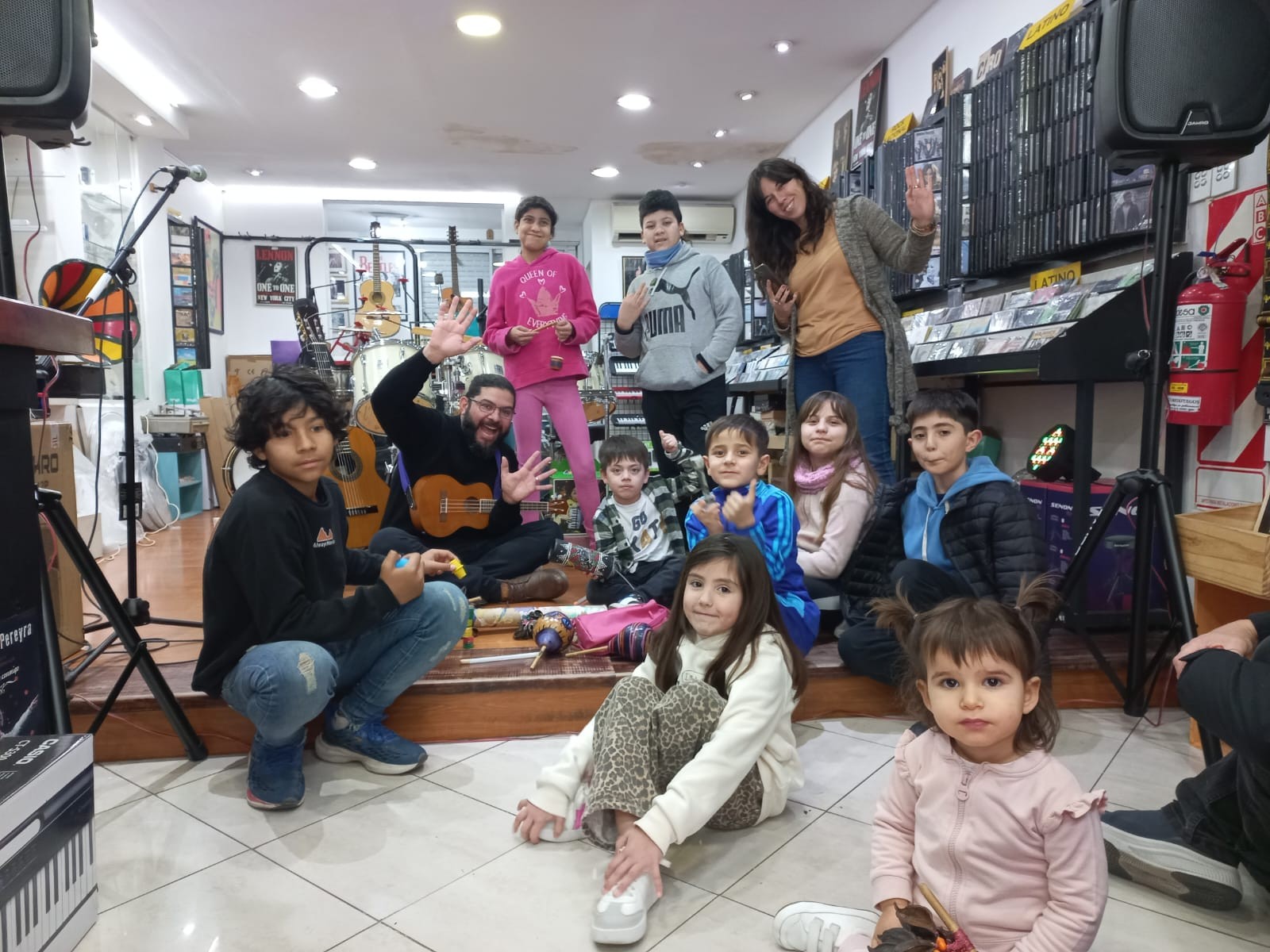 En la disquería Liverpool, integrantes de Soles y Fogatas compartieron una actividad musical.