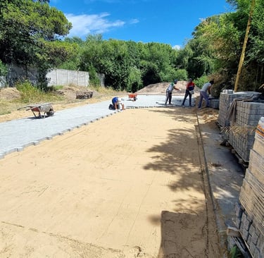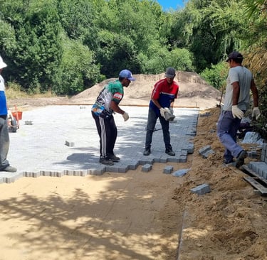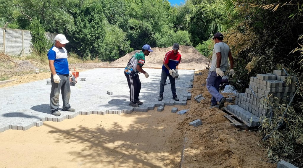 Esta mañana, comenzó la colocación de adoquines correspondientes al pavimento articulado en el barrio Los Pinos.