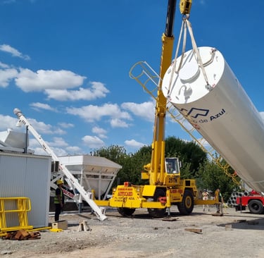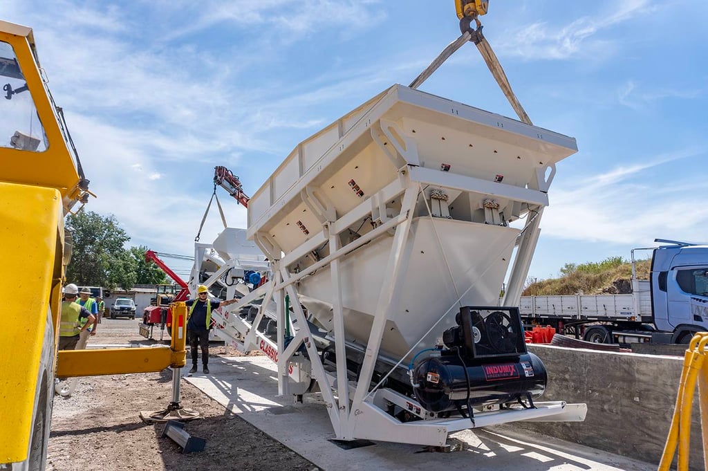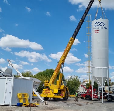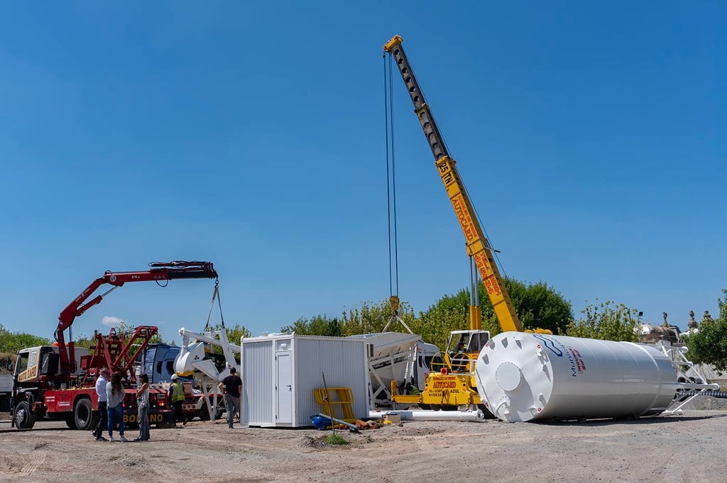 En tanto, el silo de acopio de cemento será de acero, con escalera y barandas en el techo, cono inferior con aireadores neumáticos comandados desde la planta, sistemas de carga y descarga y sistemas de nivel para monitoreo.
