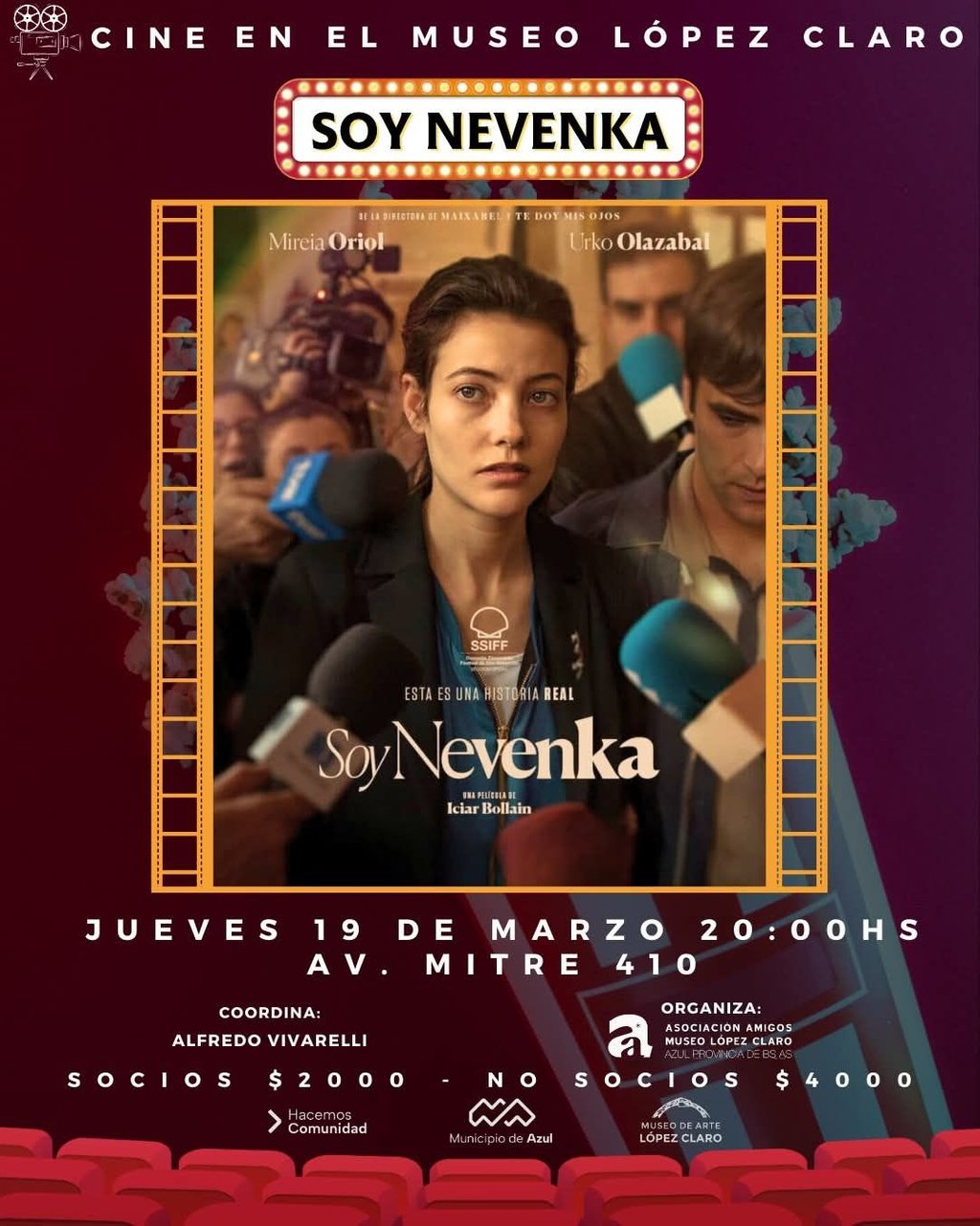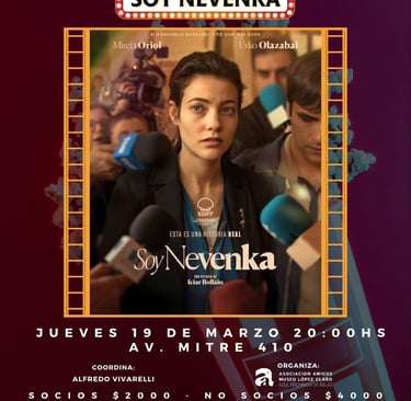 CICLO DE CINE DE LOS JUEVES en Museo López Claro auspiciado por la Amigos del Museo López Claro / Marzo 2026 / En adhesión al Día Internacional de la Mujer-08-03-2026 / "SOY NEVENKA" / España-2024 /Dirección Iciar Bollain / Intérpretes Mireia Oriol, Urko Olazabal, Ricardo Gómez, Mabel del Pozo / Color / Versión original con subtítulos en castellano / Duración 1h.50 minutos /