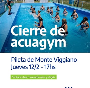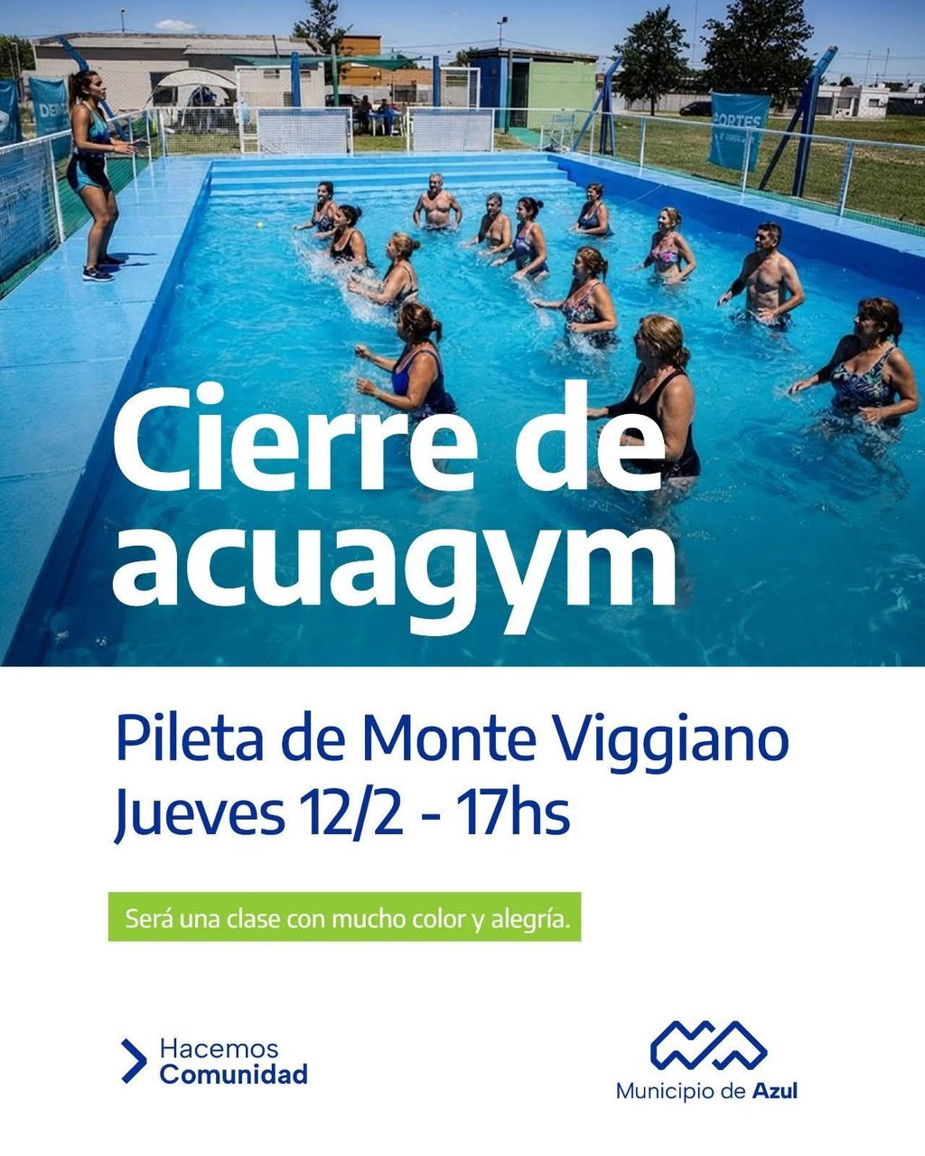 El Municipio de Azul informa que este jueves 12, en la Pileta de Monte Viggiano, tendrá lugar el cierre de las clases de acuagym, con una actividad especial, en el marco de las propuestas de verano impulsadas por la comuna.