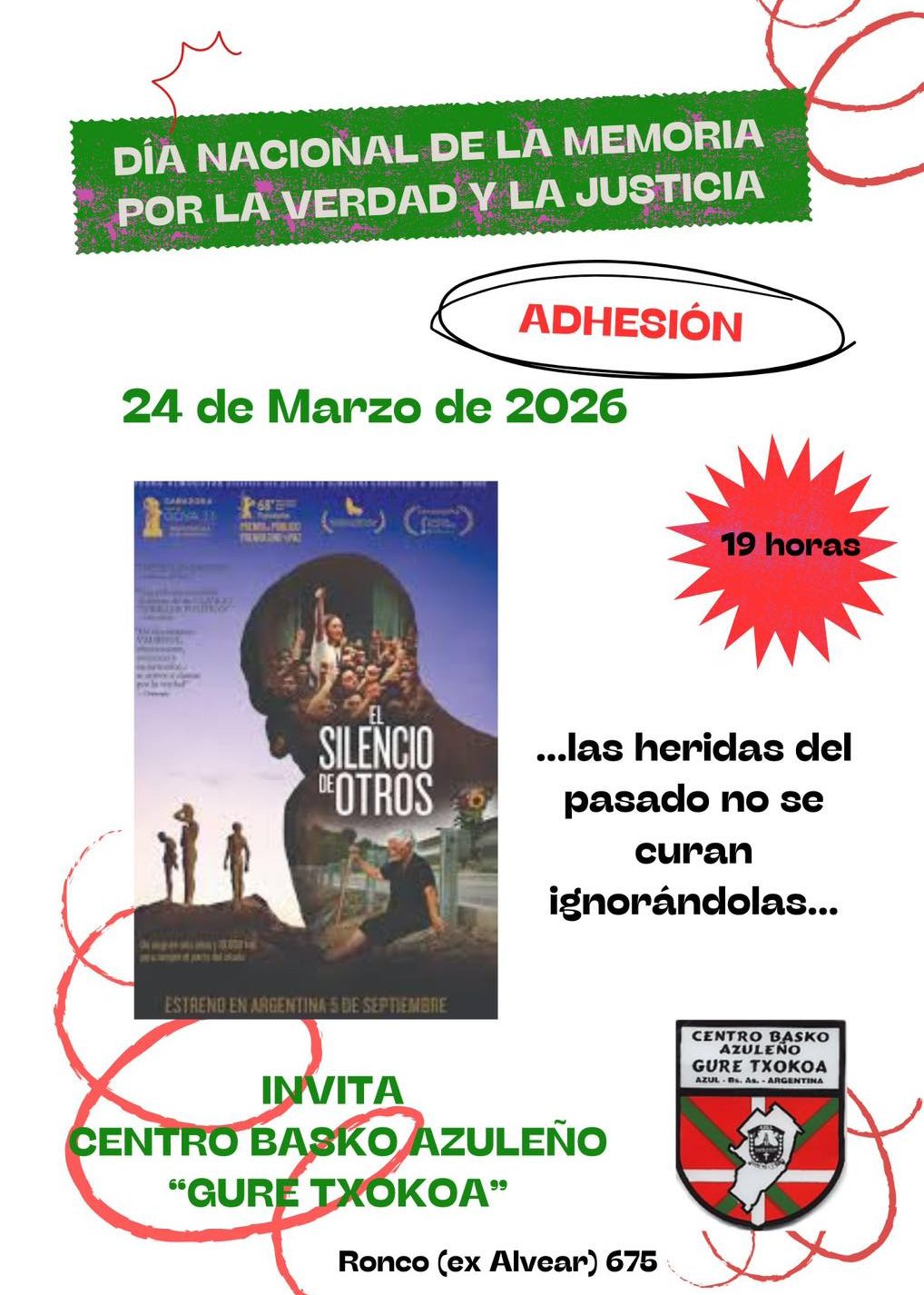 Por otra parte, el martes 24 a las 19 hs, en adhesión al Día de la Memoria por la Verdad y la Justicia, se proyectará el documental El silencio de otros, dirigido por Almudena Carracedo y Robert Bahar, con producción de Pedro Almodóvar.