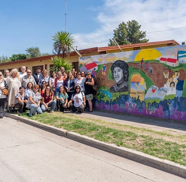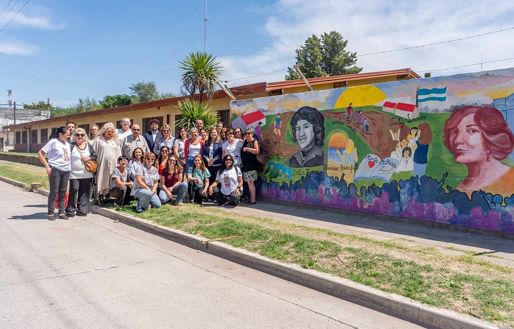 Luego, la comitiva se trasladó a la Escuela Secundaria Nº 8, donde se encuentra emplazado el mural realizado en el marco del programa provincial “Ellas no estaban pintadas”, con participación de estudiantes de la institución.