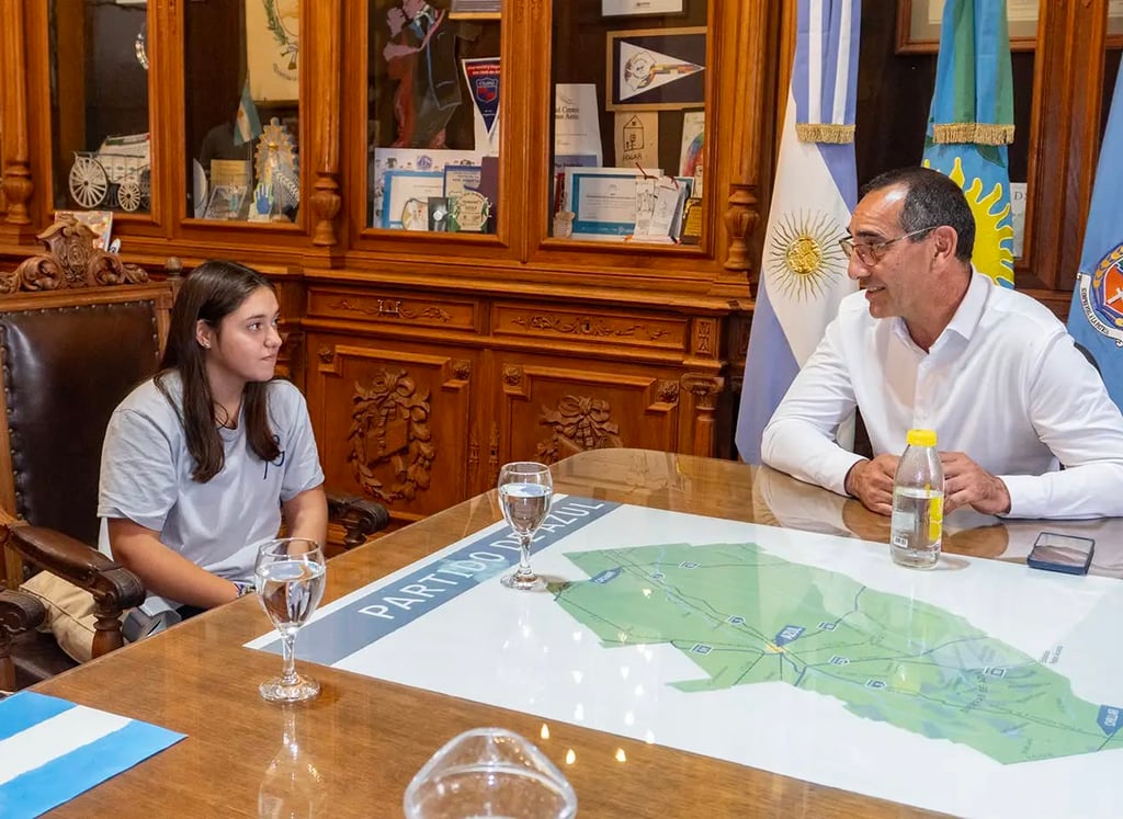 En la oportunidad, el jefe comunal felicitó a la atleta por su desempeño y resaltó el orgullo que representa para toda la comunidad de Azul. En ese marco, destacó su compromiso, esfuerzo y el ejemplo que brinda a otros jóvenes deportistas.