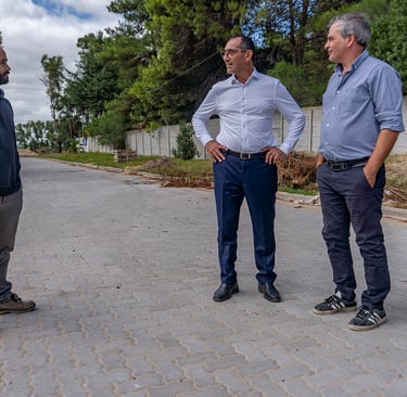 Este mediodía, el intendente Nelson Sombra recorrió la obra de construcción de pavimento articulado que se desarrolla en el barrio Los Pinos, donde verificó el avance ejecutado a la fecha.