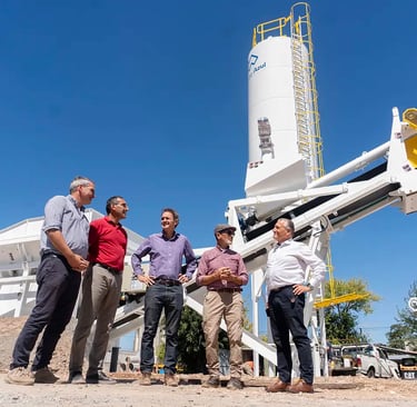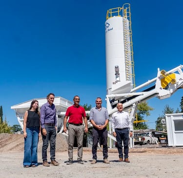 En tanto, el silo de acopio de cemento será de acero, con escalera y barandas en el techo, cono inferior con aireadores neumáticos comandados desde la planta, sistemas de carga y descarga y sistemas de nivel para monitoreo.