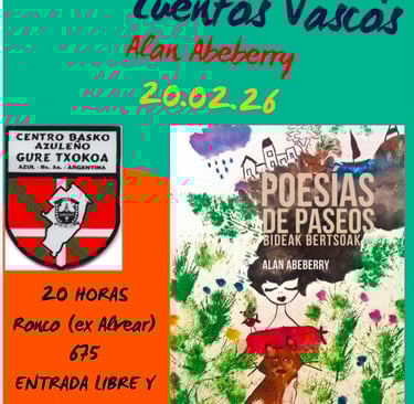 El viernes 20 de febrero a las 20 horas, en la sede de calle Ronco (ex Alvear) 675, se recibirá al poeta y escritor labortano Alan Abeberry.