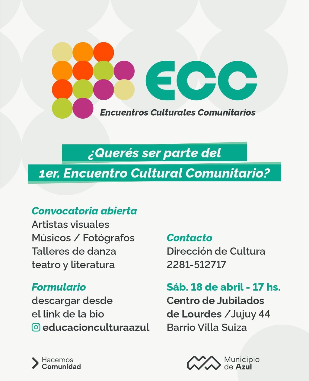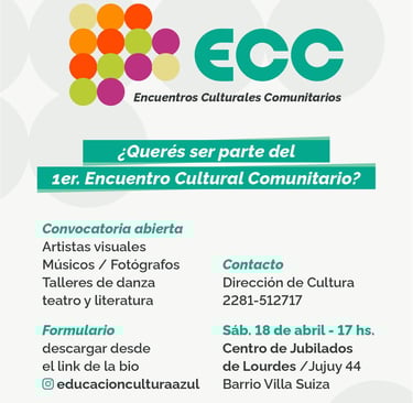 El Municipio de Azul invita a artistas, instituciones y vecinos a participar de los Encuentros Culturales Comunitarios 2026 (ECC).