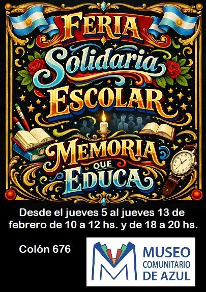El Museo Comunitario de Azul invita a la comunidad a participar de la Feria Solidaria “Memoria que Educa”, una jornada destinada a reunir fondos para el sostenimiento del museo y el fortalecimiento de sus actividades culturales y educativas.