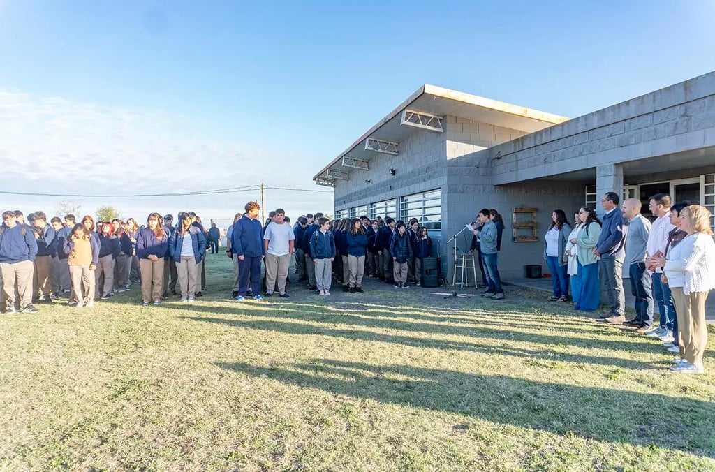 Esta mañana, el intendente municipal Nelson Sombra participó del acto de inicio de ciclo lectivo 2026 del nivel secundario en la Escuela Agraria. El jefe comunal estuvo acompañado por la directora de la institución Silvia Benson, el secretaria de Educación, Cultura y Juventud Juan José Zurro y el director de Educación Bernardo Valdez.