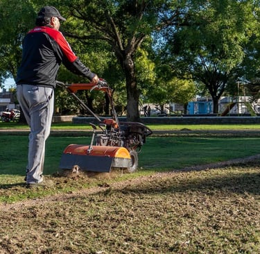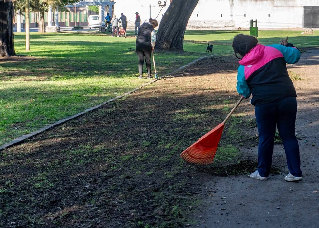 Limpieza y mantenimiento en la Plaza Juan Manuel de Rosas