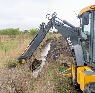 Limpieza de cunetas en la zona de la cancha de Boca Juniors de Azul y en la salida del barrio SOCOA, para mejorar el escurrimiento del agua en la zona y en Bidegain.
