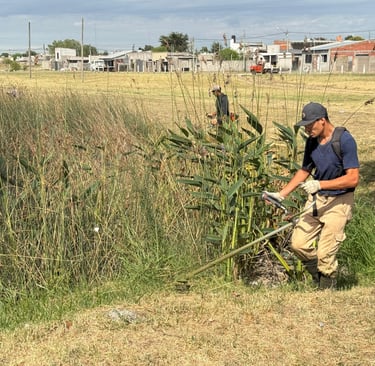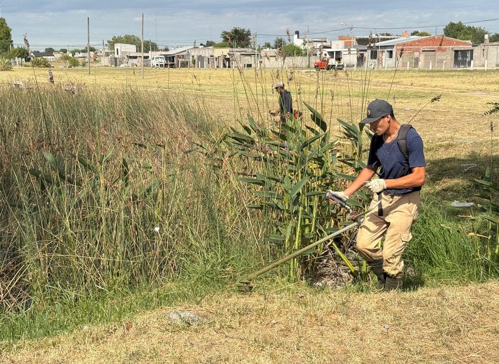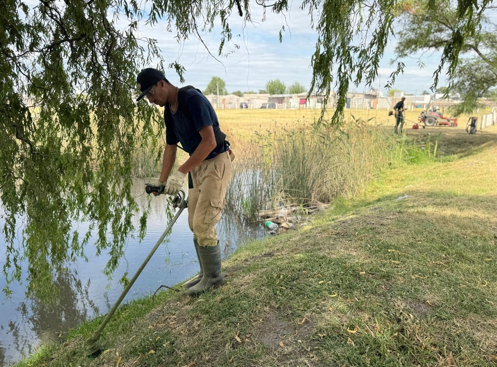 La comuna lleva adelante un plan de corte de pasto, desmalezamiento y cuidado de plazas y espacios verdes, en toda la localidad.