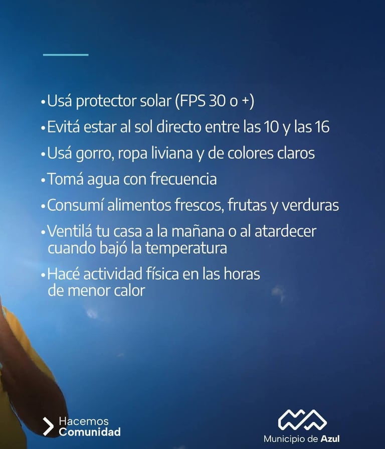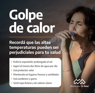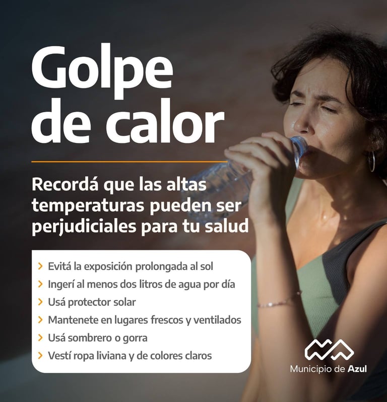 El Municipio de Azul brinda a la comunidad una serie de medidas para prevenir un golpe de calor y otros cuidados generales a tener en cuenta durante el verano, ante las altas temperaturas pronosticadas para estos días.