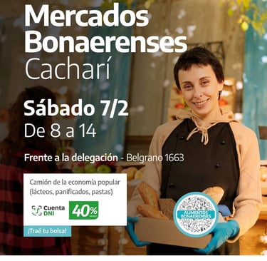 En tanto, el sábado 7, Mercados Bonaerenses se desarrollará en Cacharí, frente a la Delegación Municipal. En dicho espacio, de 8 a 14, se ubicará el camión de la economía popular.