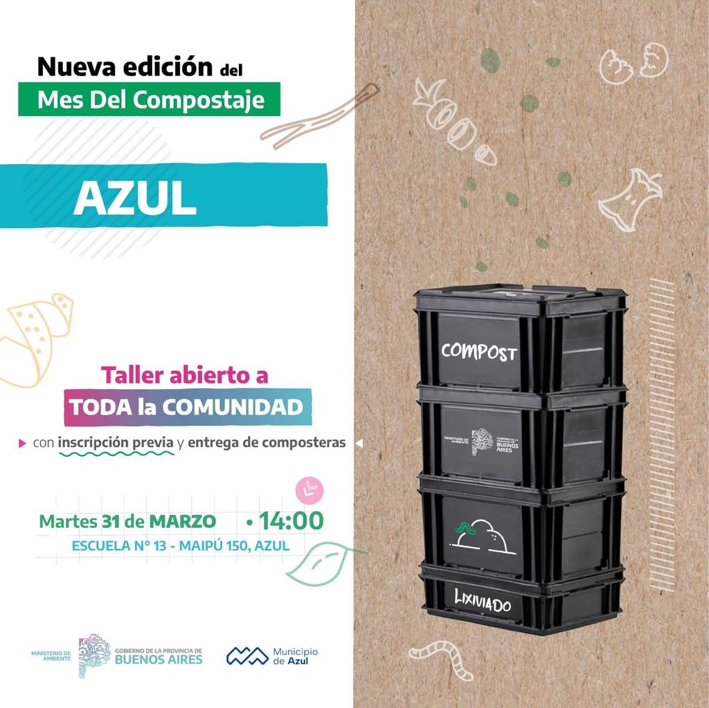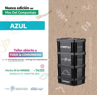 El Municipio de Azul informa que, en el marco del Mes del Compostaje, se realizará un taller sobre la temática destinado a vecinas y vecinos.