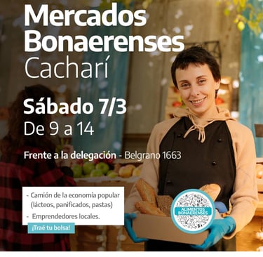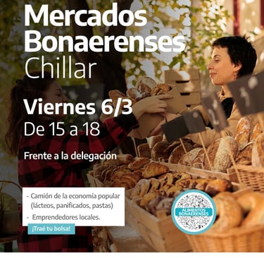 Por la tarde, de 15 a 18, Mercados Bonaerenses estará en Chillar, frente a la Delegación Municipal. En dicho espacio se ubicará el camión de la economía popular y habrá emprendedores.