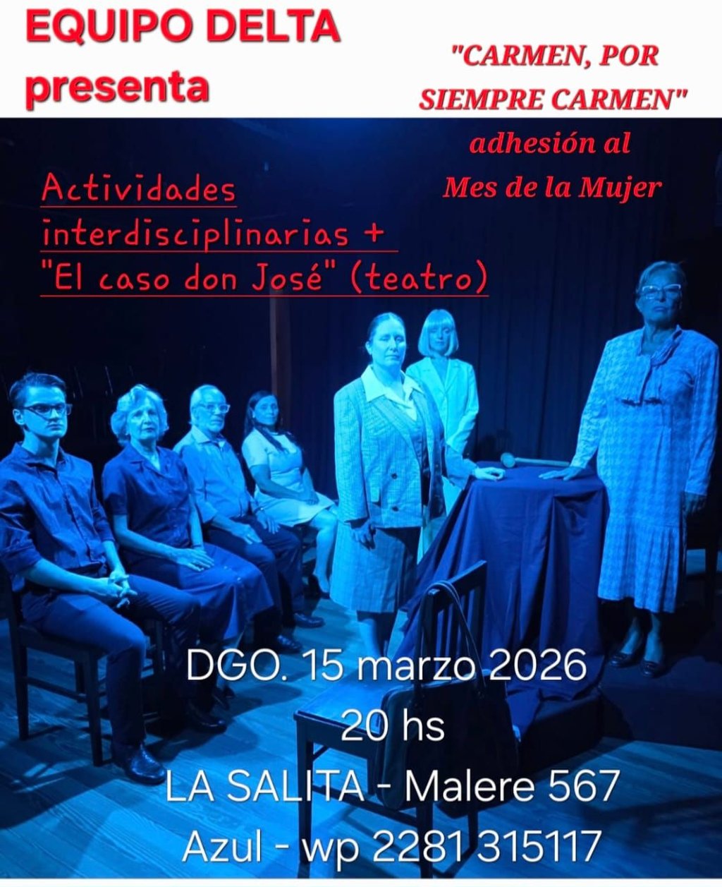 La función, en ADHESIÓN AL MES DE LA MUJER, tendrá lugar el domingo 15 de marzo a las 20 hs en La Salita de calle Malere (ex Córdoba) 567.