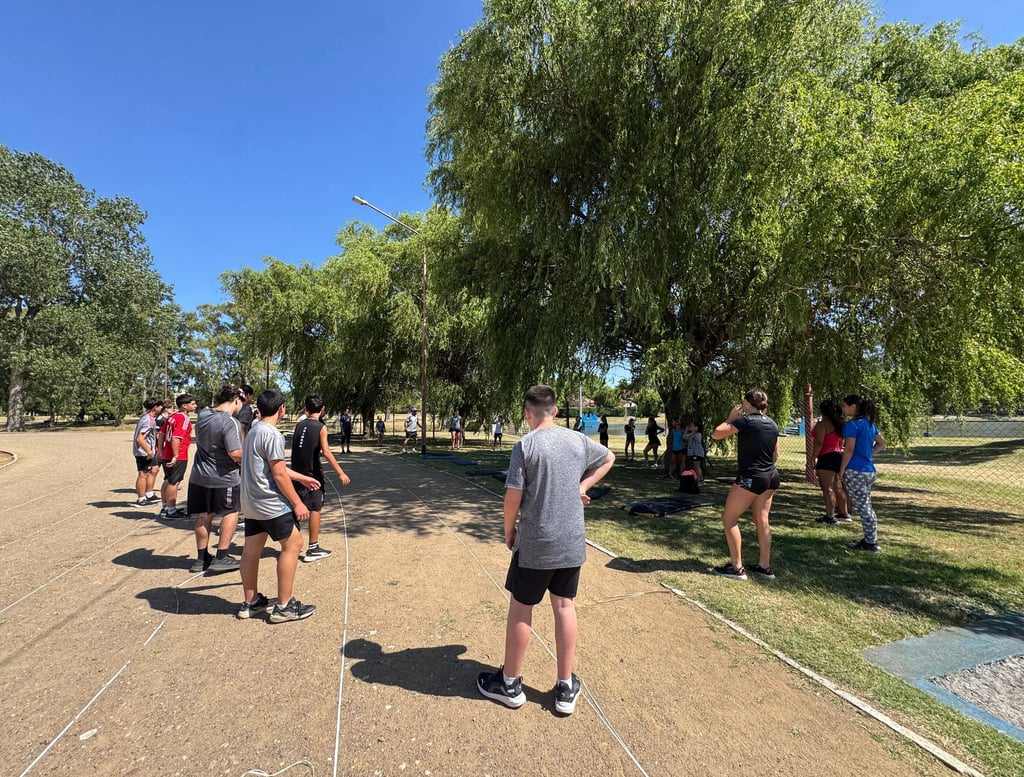 Cabe señalar que si bien los grupos concentran en la pista, los entrenamientos se llevan adelante en distintos sectores del Balneario Municipal, e incluyen trabajos de fuerza, potencia, levantamiento de pesas y el uso de materiales de gimnasio, entre otras variables de entrenamiento funcional.