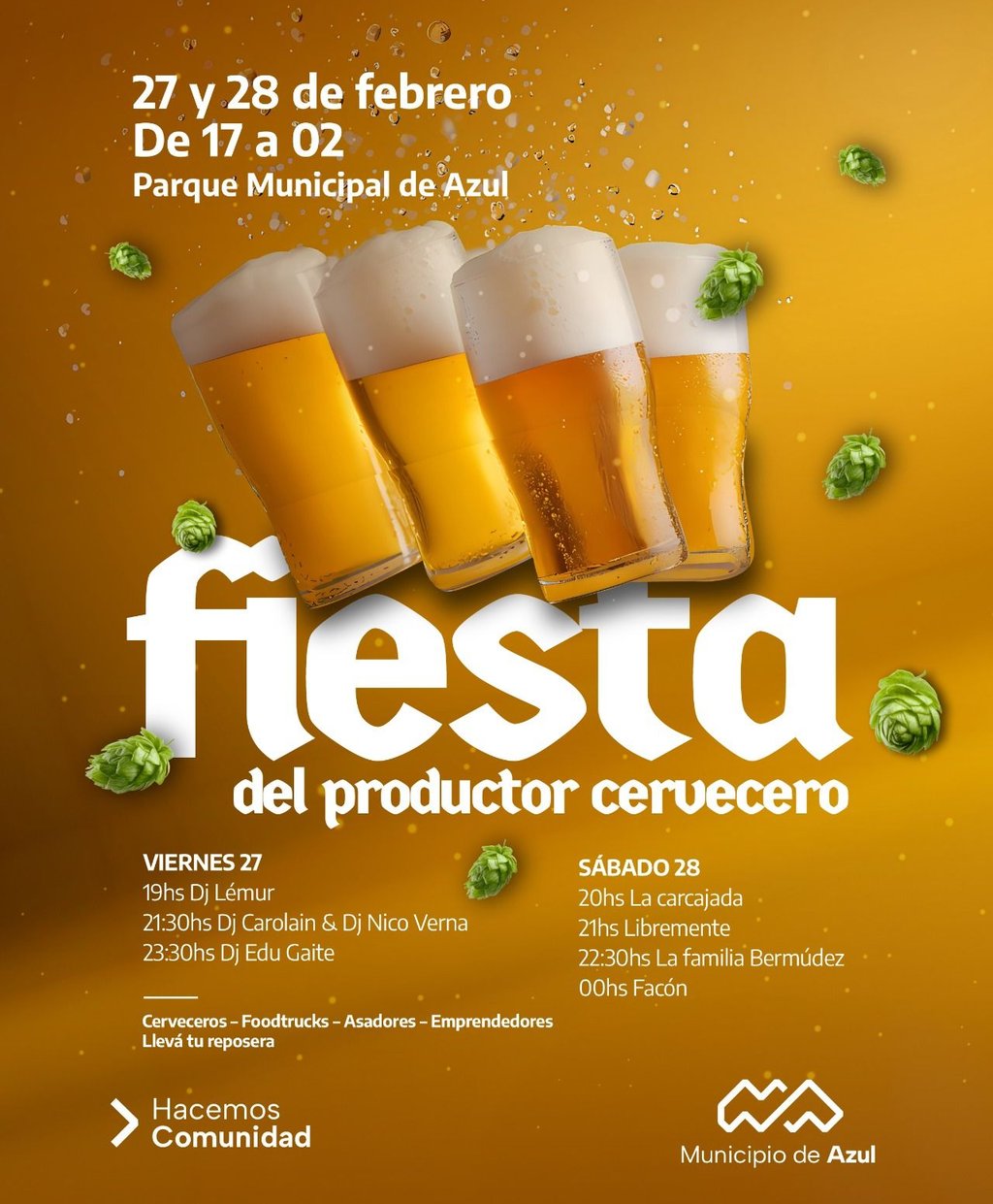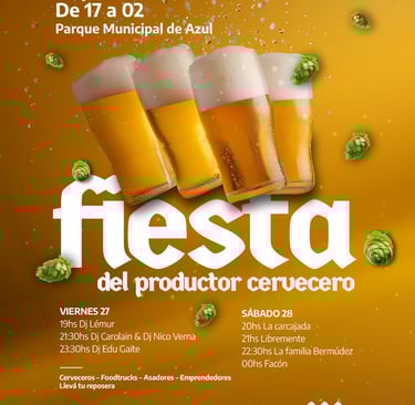El Municipio de Azul invita a la comunidad a participar de la Fiesta del Productor Cervecero que se realizará el viernes 27 y sábado 28, en el Parque Municipal.