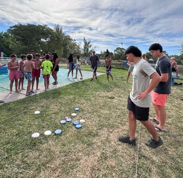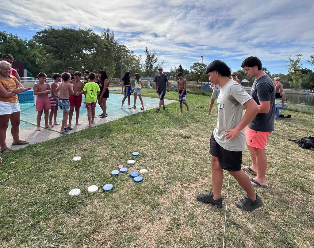 En el marco del horario de pileta libre en el Balneario Municipal, los fines de semana se realizan diferentes actividades recreativas para quienes allí concurren.