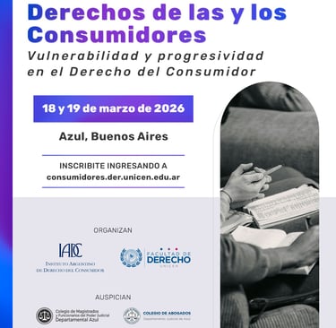 El evento es organizado conjuntamente con el Instituto Argentino de Derecho del Consumidor y tendrá como eje central “Vulnerabilidad y progresividad en el Derecho del Consumidor”, una temática que propone reflexionar sobre los desafíos actuales en la protección de las personas consumidoras, especialmente en contextos de desigualdad estructural y nuevas dinámicas de mercado.